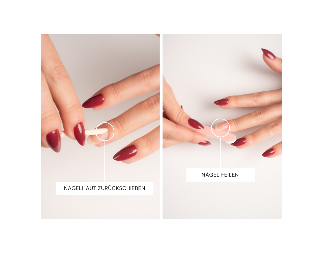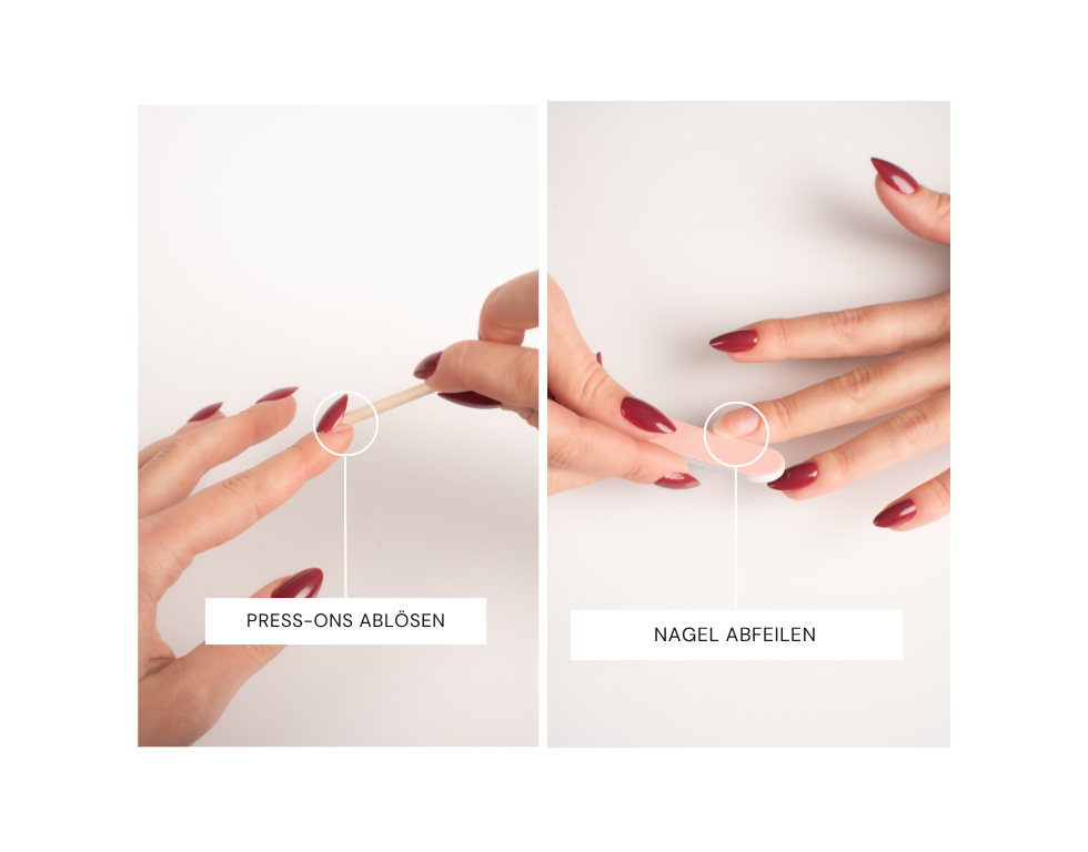 Feile danach vorsichtig die Nageloberfläche, um Kleberreste zu entfernen.